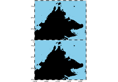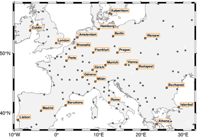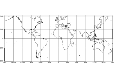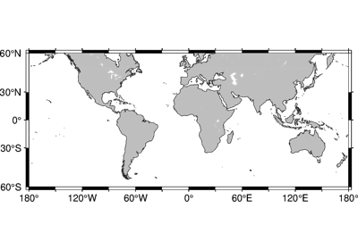Creates a basic or fancy basemap with axes, fill, and titles. Several map projections are available, and the user may specify separate tick-mark intervals for boundary annotation, ticking, and [optionally] gridlines. A simple map scale or directional rose may also be plotted.